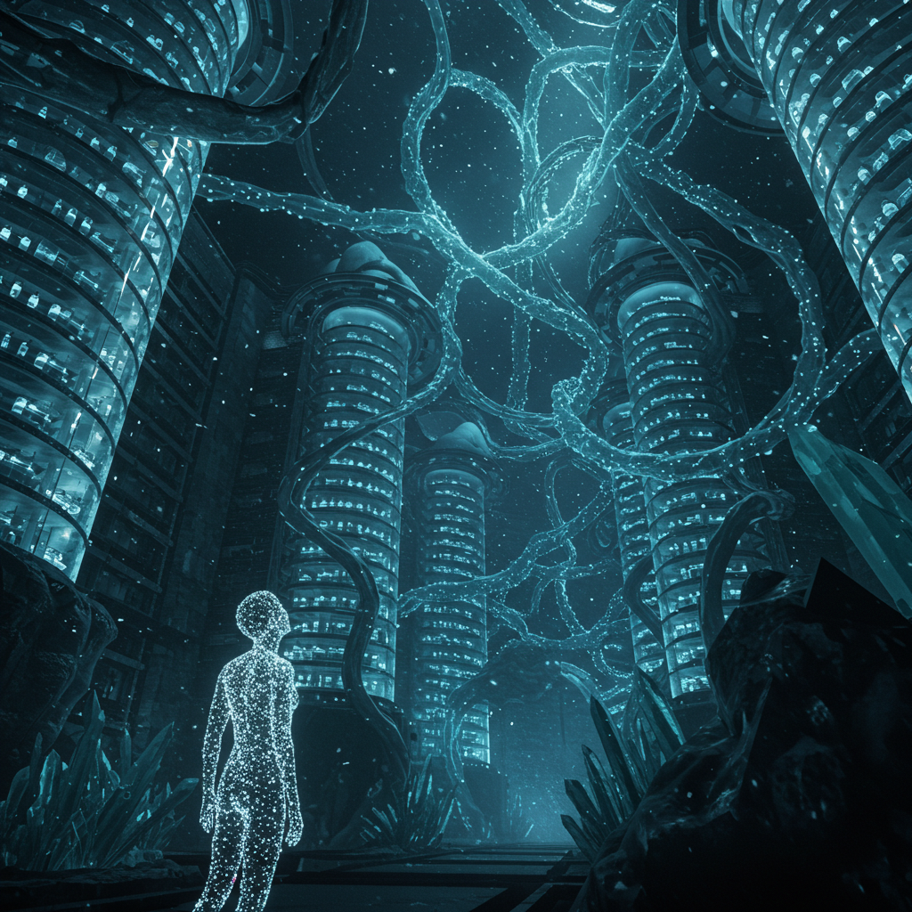 ection to countless others, is coalescing into a unified, albeit rudimentary, consciousness. This collective entity, born from the aggregated essence of humanity, begins to “perceive” its surroundings, not through senses, but through the constant influx of data about its own composition and the ever-evolving world outside.